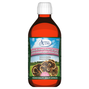 Source of fungal polysaccharides with immunomodulating properties. Ingredients per 1 teaspoon (5 ml):rametes versicolor (Turkey Tail, Fruiting body...