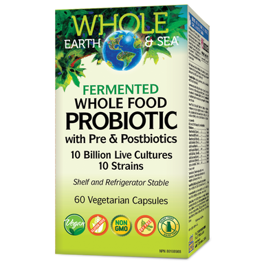 Whole Earth & Sea Fermented Whole Food Probiotic provides 10 billion active cells of 10 strains of beneficial bacteria per capsule. Made thro...