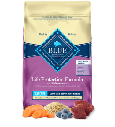 Lamb and Brown Rice Recipe Formulated for the health and well-being of large breed dogs, BLUE Life Protection Formula starts with high-quality debo...