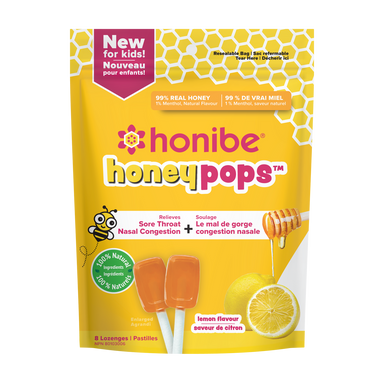 Honibe HoneyPops combine the powerful benefits of real honey with menthol for fast soothing relief from sore throat & nasal congestion. 100% N...
