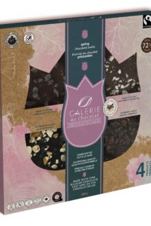 A taste of our most beautiful dark chocolate flavours: Cherry & Coconut, Blueberry & Almond, Ginger & Sea Salt, and Cranberry Orange.