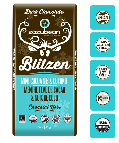 A blast of Holiday fun! Blitzen is brisk, playful and always looking for an adventure. This cool mint 70% dark chocolate bar with cocoa nibs and...