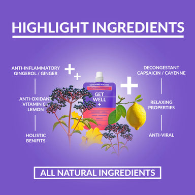 ELDERBERRY / GINGER / HIBISCUS / LEMON / MAPLE / CAYENNE Wishing someone well is easy to do with GET WELL and its powerhouse lineup of natural well...