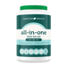 all-in-one comes in a 20 serving vanilla and unsweetened natural variety. 100% vegan-friendly, gluten-free and dairy-free. This product is proudly made in Canada.