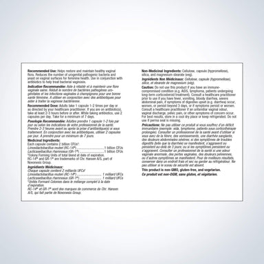 Reduces the number of urogenital pathogenic bacteria. Non-Medicinal Ingredients:Maltodextrin, capsule (hypromellose, titanium dioxide), cellulose, ...