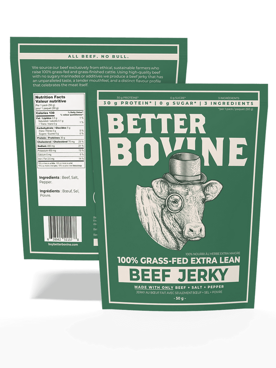 Our refined take on classic beef jerky. Satisfying bite and scrumptious beefy flavour. Made with only 3 ingredients: beef, salt, and pepper.