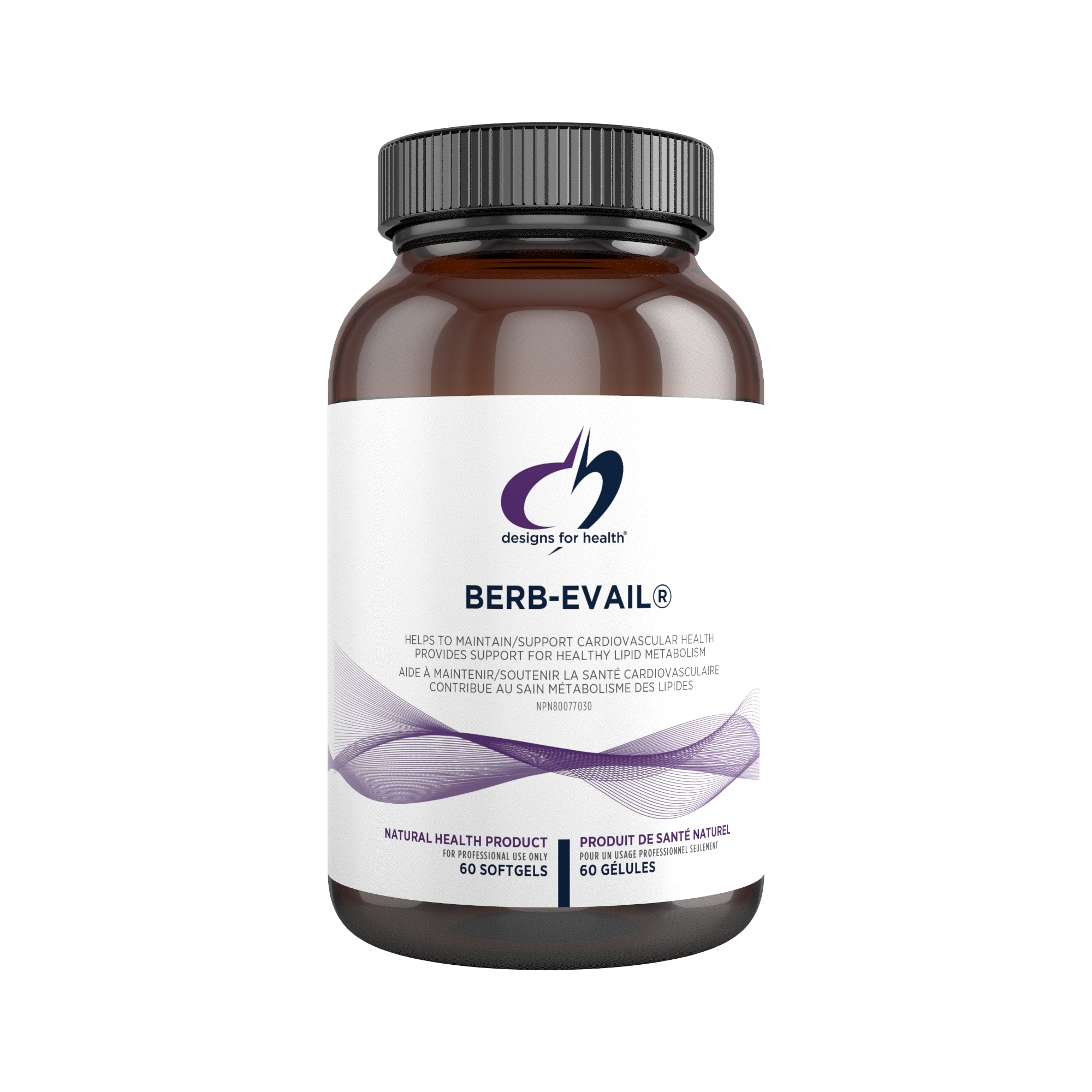 Berb-Evail is manufactured using the Designs for Health Evail™ technology, which is an all-natural formulation that improves the absorption and delivery of berberine. This process uses a proprietary blend of MCT oils, non-soy derived lecithin, and vitamin E, without the use of potentially harmful surfactants.