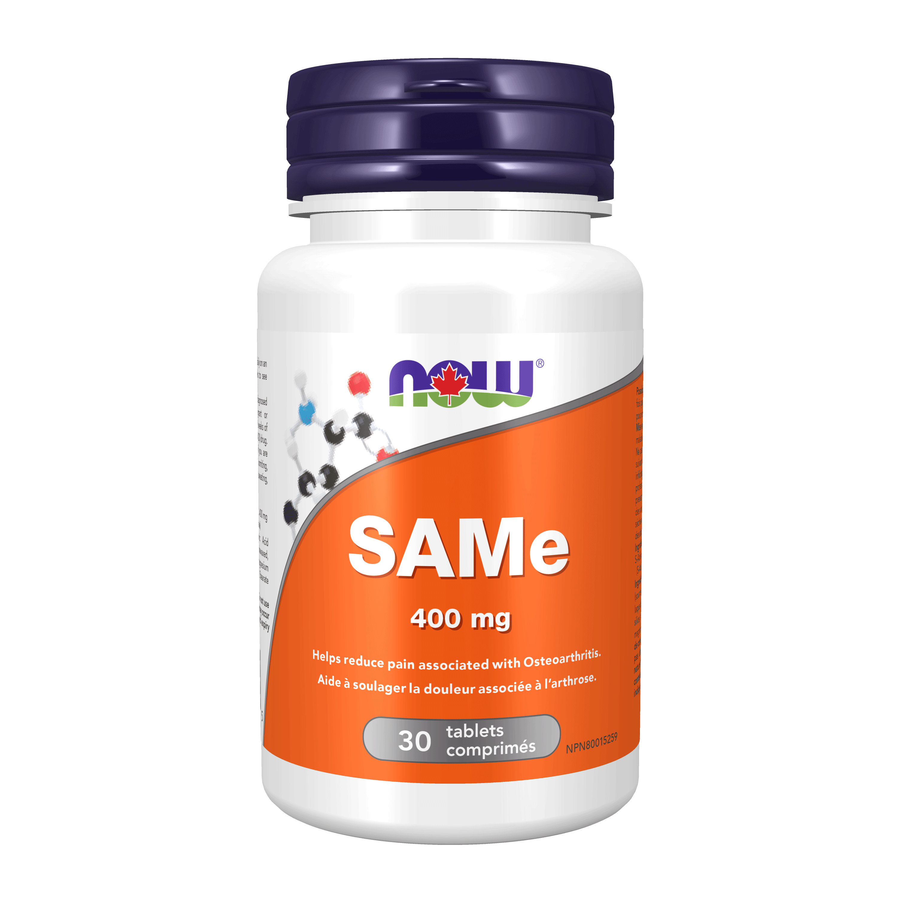 SAMe (S-adenosylmethionine), a compound native to the body, is a critical component of many biochemical reactions, including those that affect brain biochemistry and joint health. SAMe is critical for the synthesis of neurotransmitters, is important for energy production in the brain, contributes to the maintenance of healthy cell membrane function, and influences cartilage metabolism. NOW® SAMe is enteric-coated, which makes it very well tolerated and protects it from degradation during digestion. This 400mg dosage is our strongest offering, helping to reduce the number of pills needed per day and suitable for more severe health conditions.